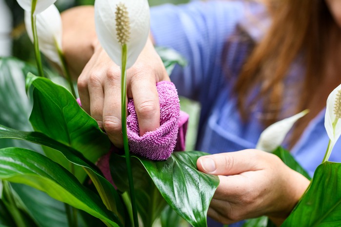 ينمو زنبق السلام حتى ارتفاع 40 سنتيمترًا تقريبًا، ولا يحتاج إلى ضوء الشمس المباشر، لكنه يتطلب ريًا منتظمًا، وهو مثالي للمنازل ذات الإضاءة الضعيفة.